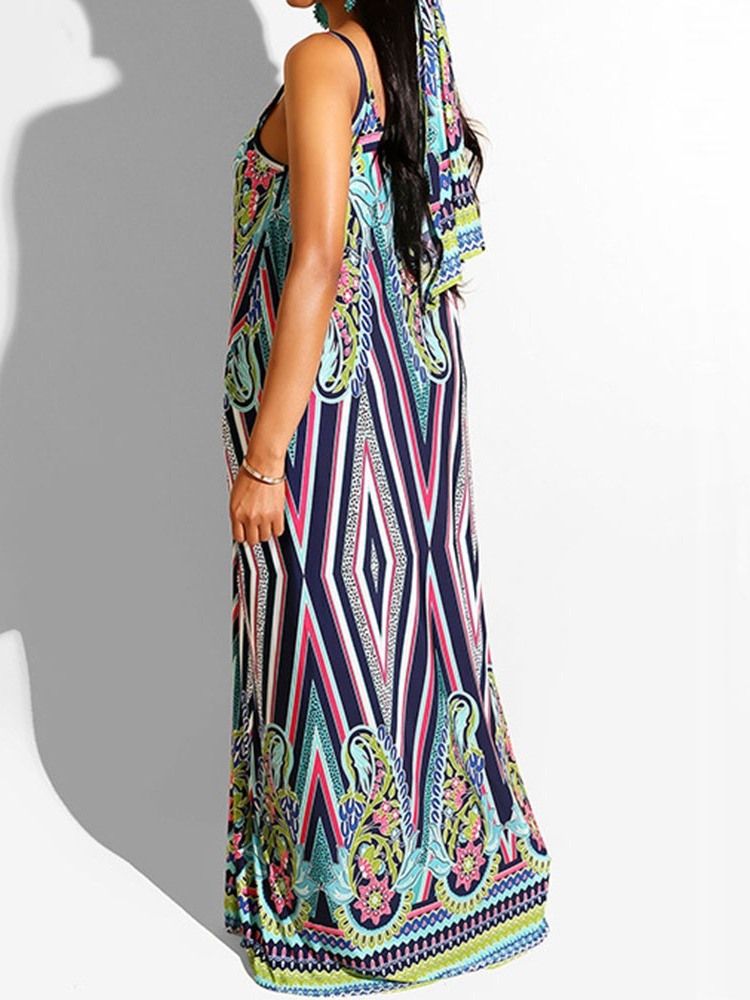 Golvlångt Tryck För Kvinnor Ärmlös Geometrisk Casual Klänning