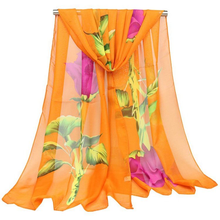 Graceful Rose Printed Chiffon Scarf För Kvinnor