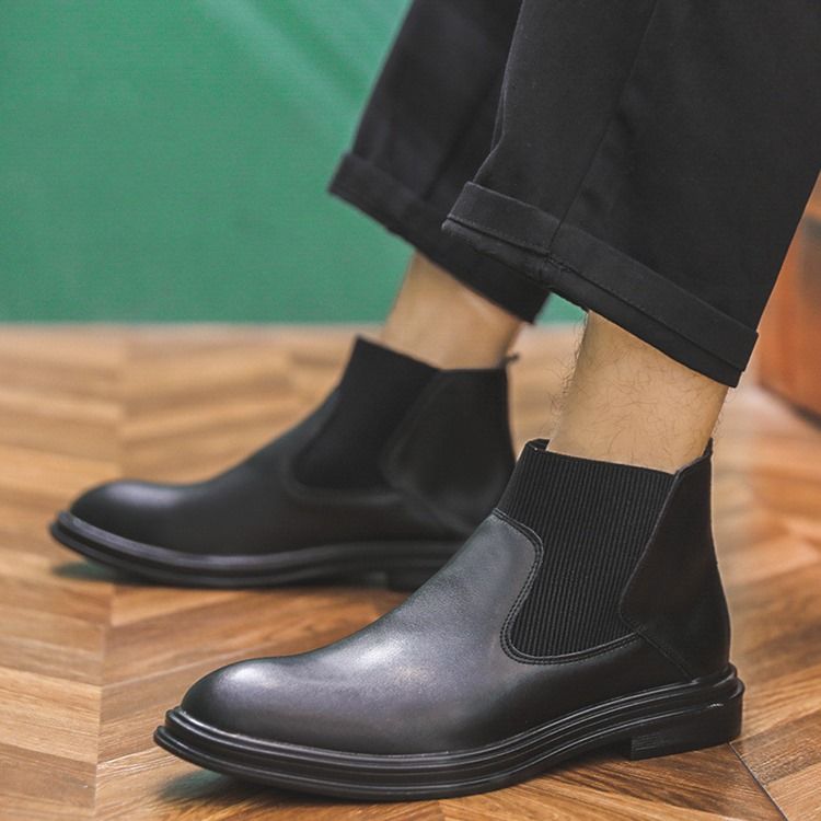 Herr Slip-on Pu Stövlar Med Rund Tå Patchwork