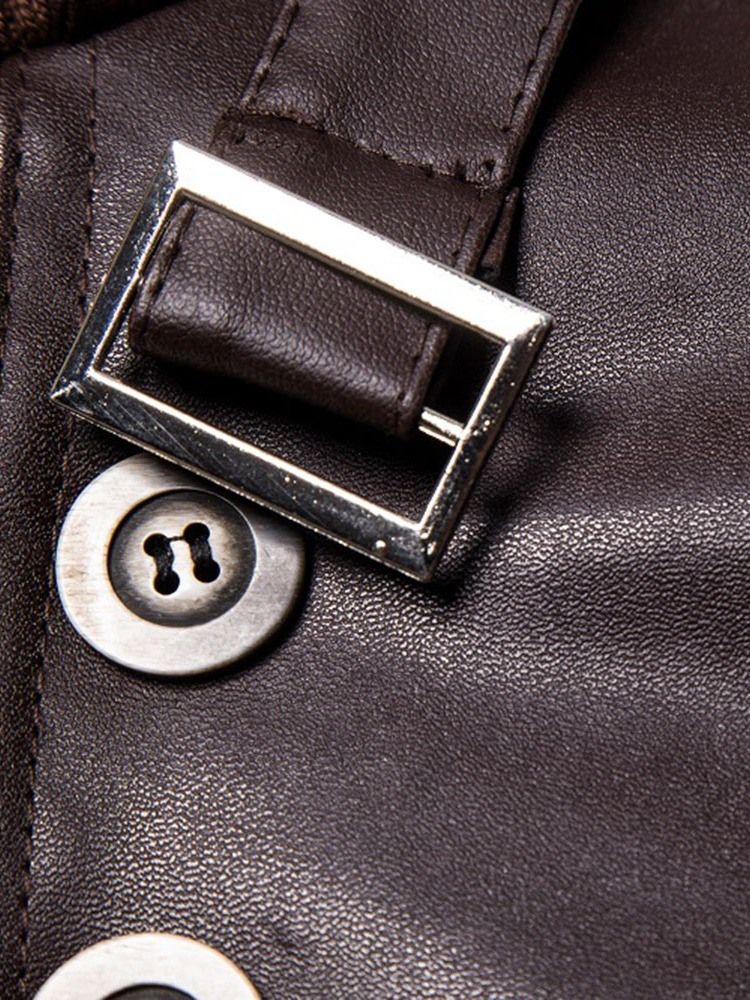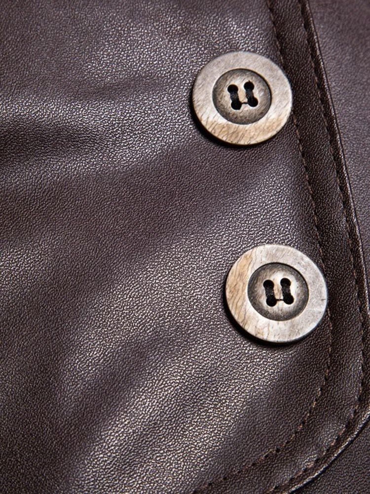 Herr Standard Stand Collar Plain Slim European Leather Jacket