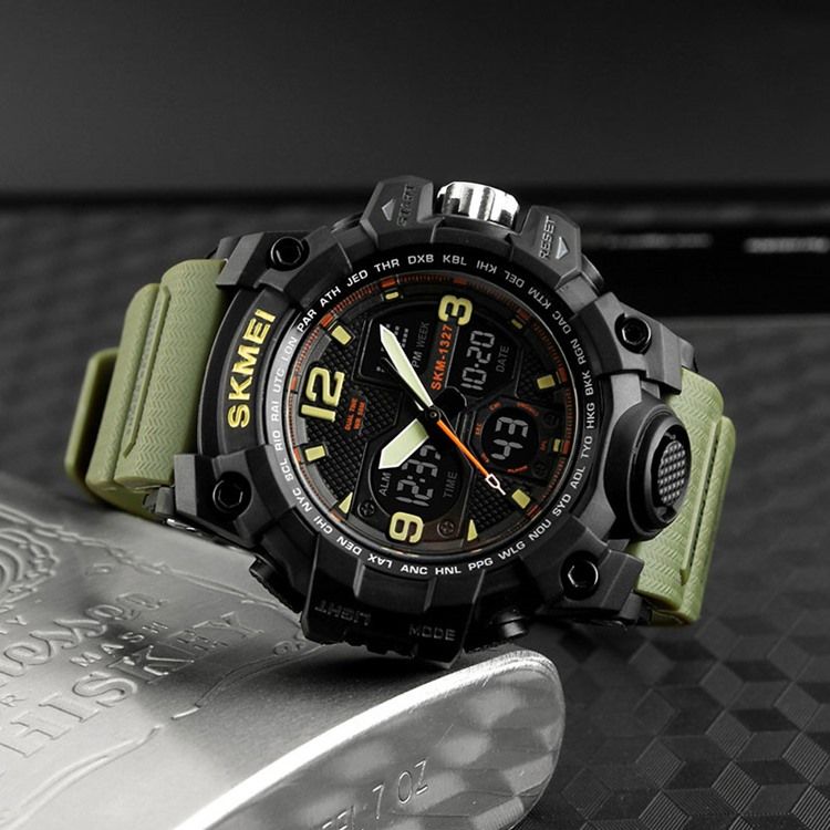 Herrsporter Multifunktion Flerfärgad Dubbelrörelse Herrklocka