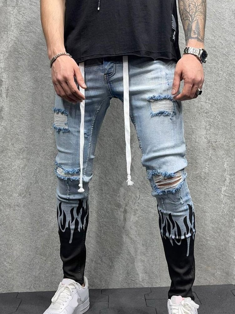 Hole Pencil Pants Mid Waist Men's Jeans