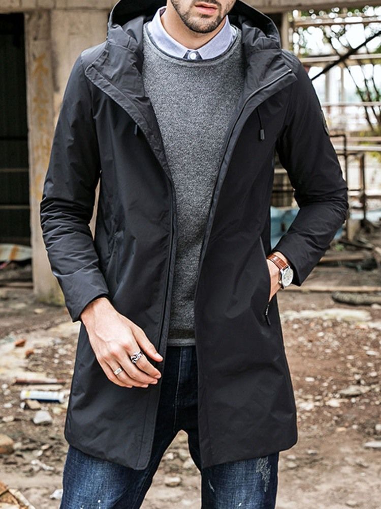 Hooded Zipper Plain Loose Casual Men's Trench Coat