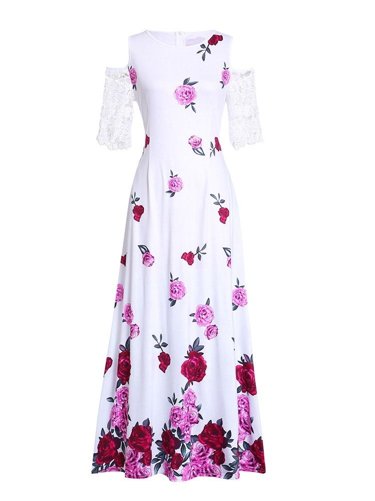 Kall Axel Ankel Längd Halvärmad Lapptäcke Blommig Expansion Klänning