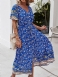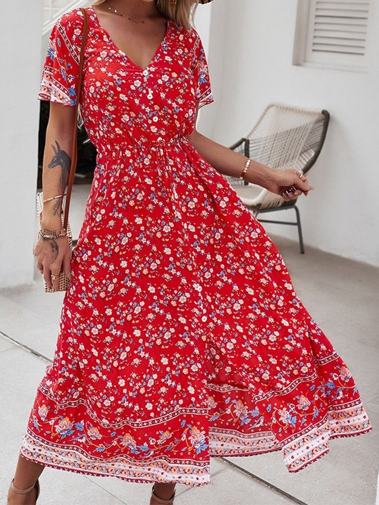 Kortärmad V-ringningsknapp Söt Vanlig Damklänning