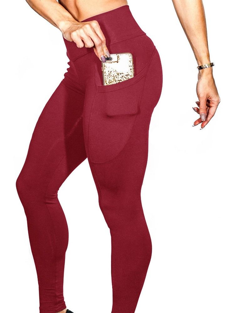 Kvinnor Anti-svettfickor Solid Yoga Leggings Yoga Byxor Hög Midja Tiktok Leggings