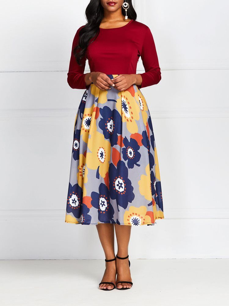 Kvinnor I Mellersta Vaden Med Rund Hals Patchwork A-linjeklänning