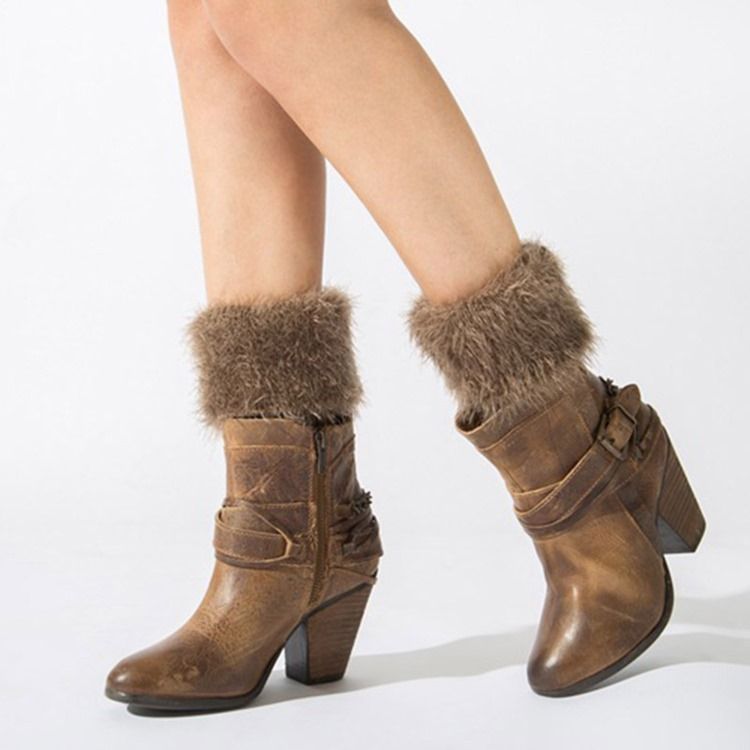 Kvinnor I Rena Färger Plyschkängor Manschettstrumpor