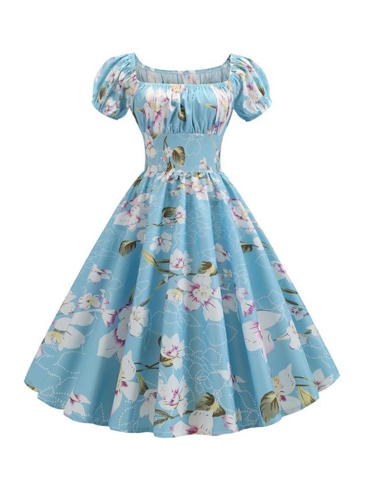 Kvinnor Kvadratisk Kortärmad A-linjeformad Klänning