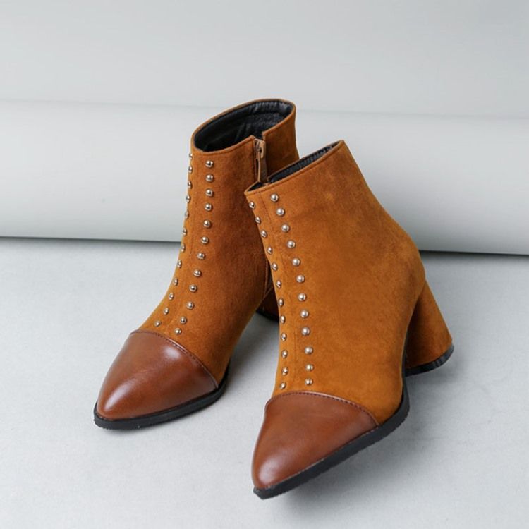 Kvinnor Med Spetsig Tå Sido Dragkedja Patchwork Ankel Stövlar