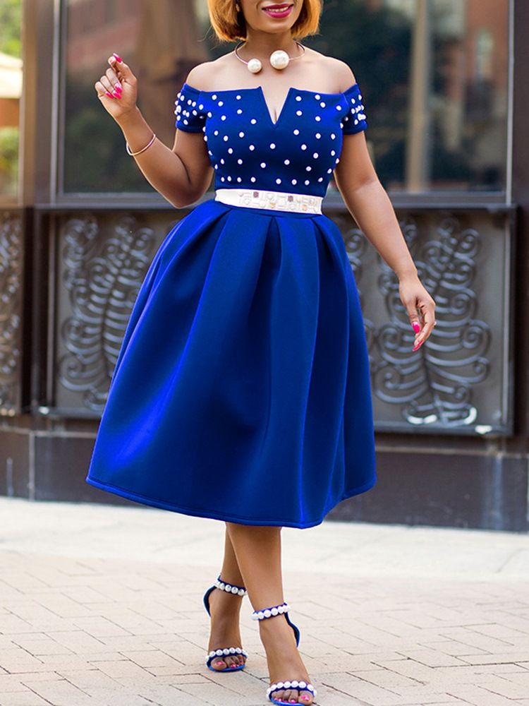 Kvinnor Mid-calf Kortärmad Pärlklänning