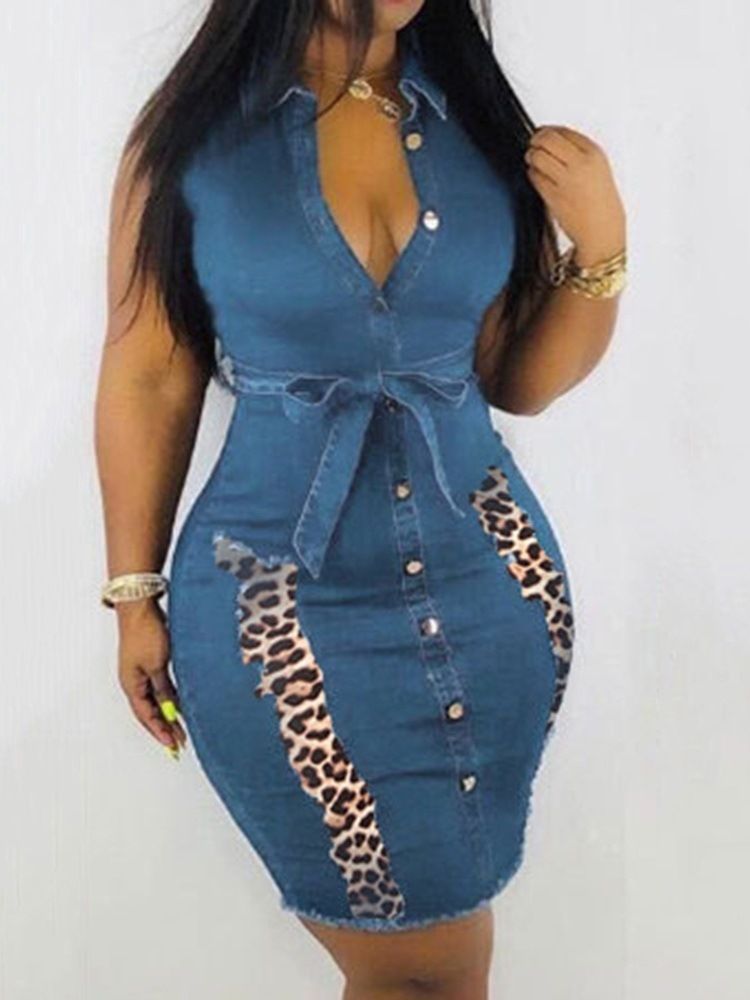 Kvinnor Ovanför Knä Ärmlös Knapp Enkelbröstklänning