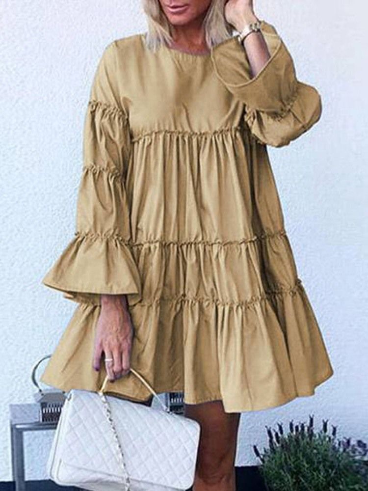 Kvinnor Ovanför Knä Veckad Långärmad Tröja Vanlig Klänning