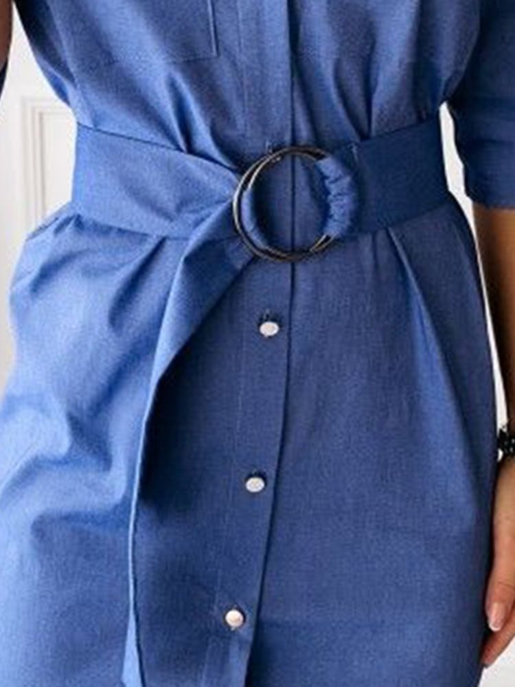 Kvinnor Ovanför Knäskaftet Trekvartärmad Enkelbröstklänning