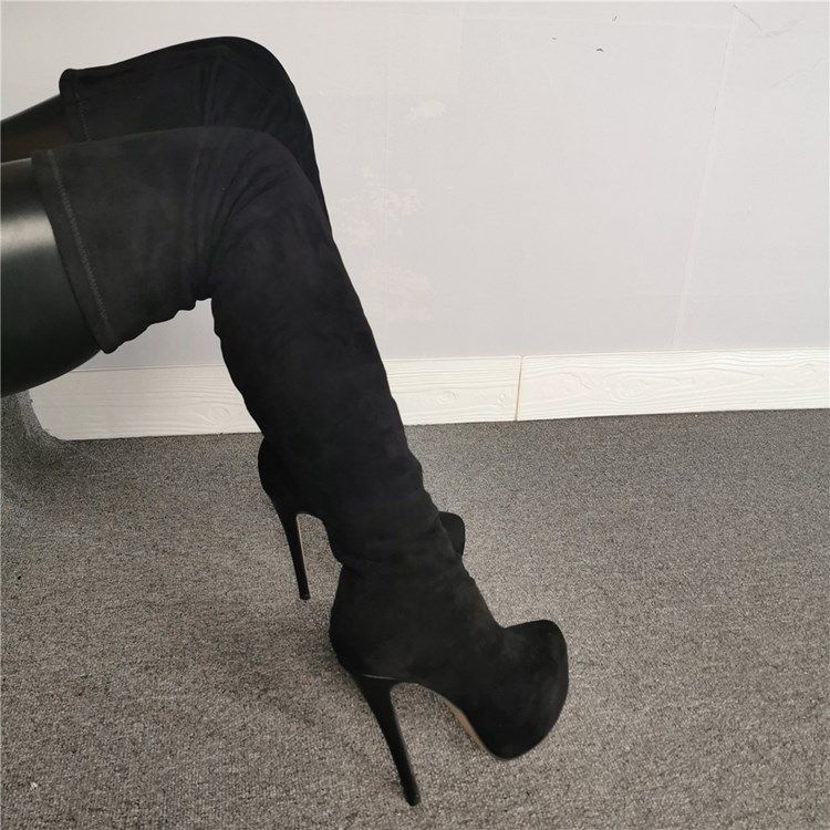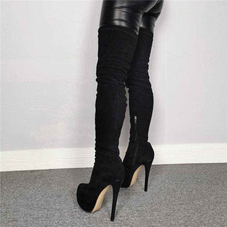 Kvinnor På Sidan Med Blixtlås Med Rund Tå Och Knä