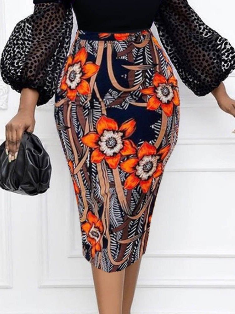 Kvinnor Print Mid-calf Bodycon Fashion Floral Kjol