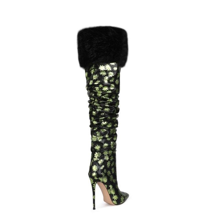 Kvinnor Stilettklack Spetsiga Blomtryck Stövlar