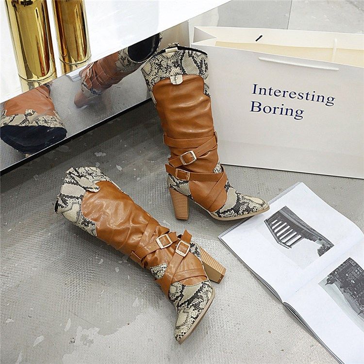 Kvinnor Tjock Klack Rund Tå Knähöga Stövlar