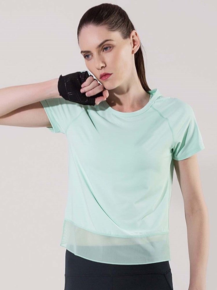 Kvinnors Andningsbara Fasta Patchwork Kortärmade Toppar