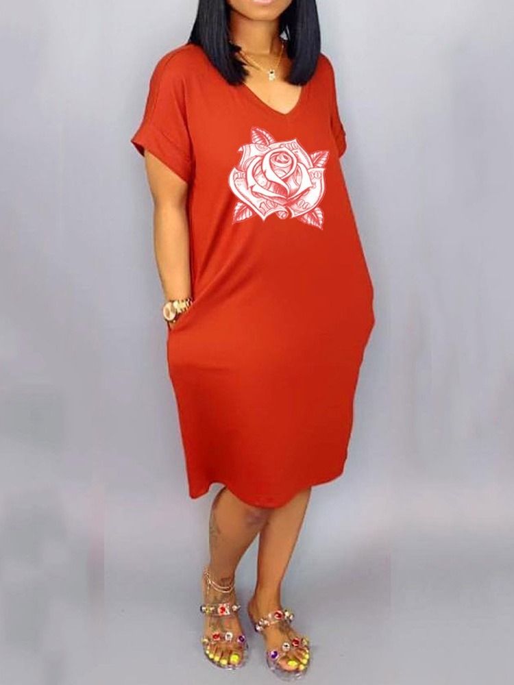 Kvinnors Avslappnade Kort Ärm V-ringning Med Rak Raka Fickor