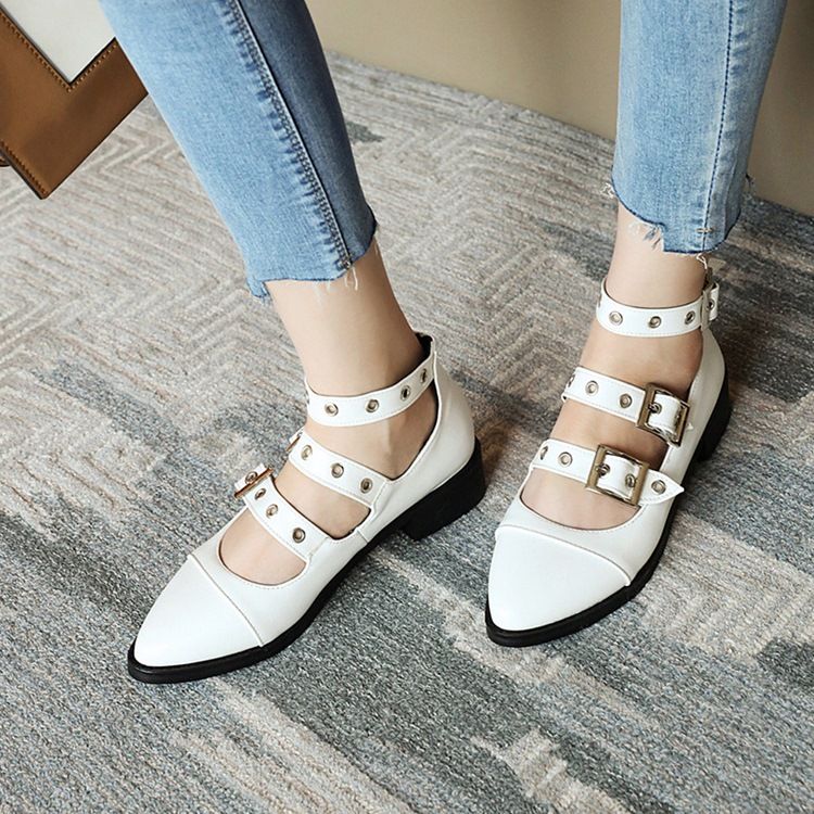 Kvinnors Blockklack Spänne Spetsig Tå Casual Tunna Skor
