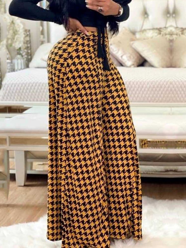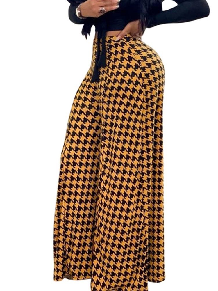 Kvinnors Färgblock Full Längd Vida Ben Lösa Casual Byxor
