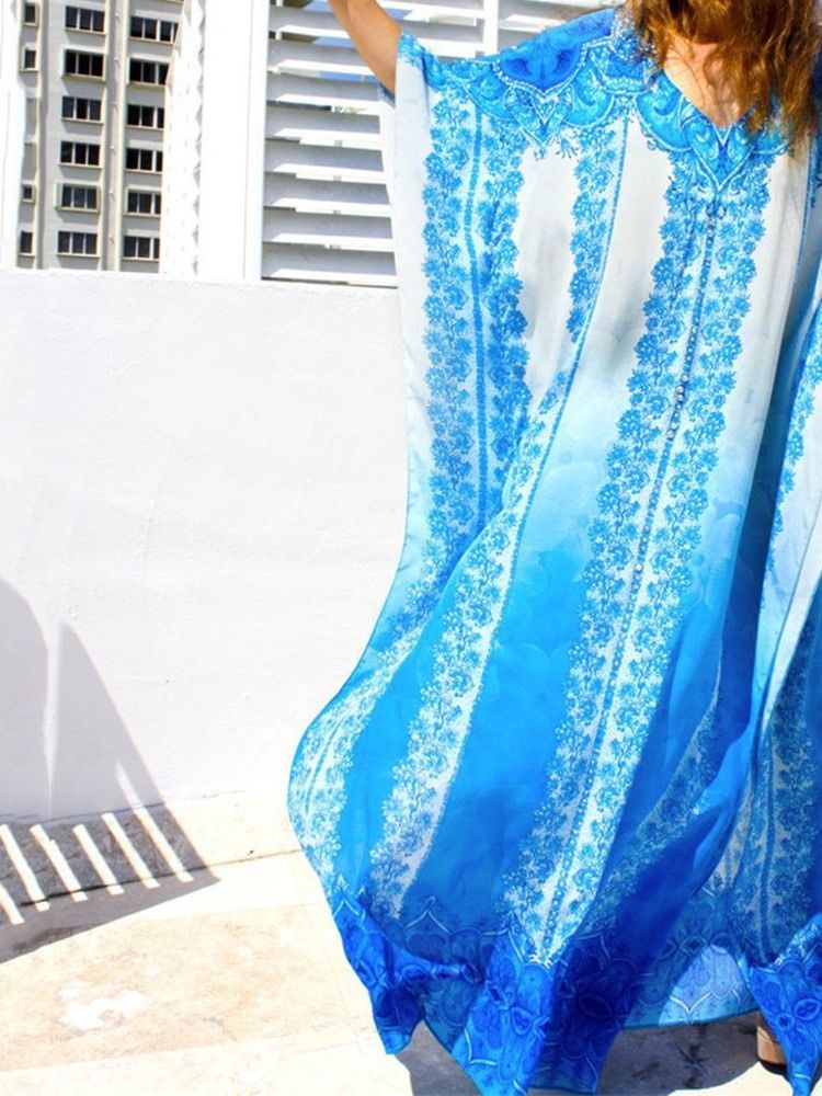 Kvinnors Färgblock Golvlånga Strandklänningar Med Tryck