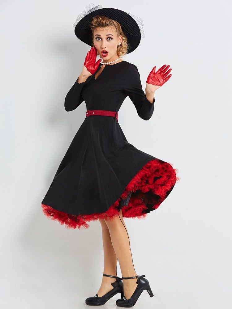 Kvinnors Färgblock Patchwork Belt A Line Dress