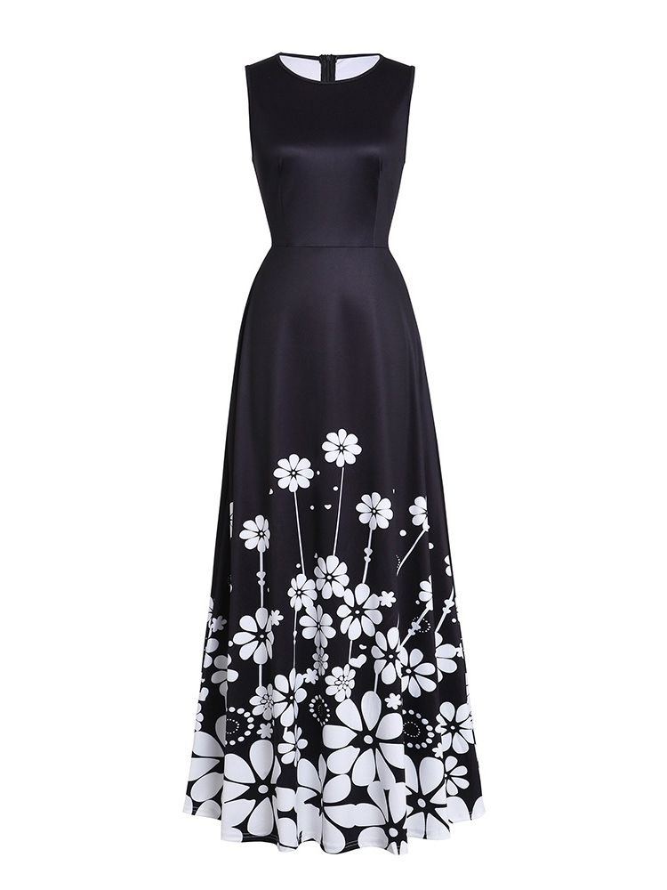 Kvinnors Fotlånga Tryckficka Ärmlös Utvidgning Blommig Klänning