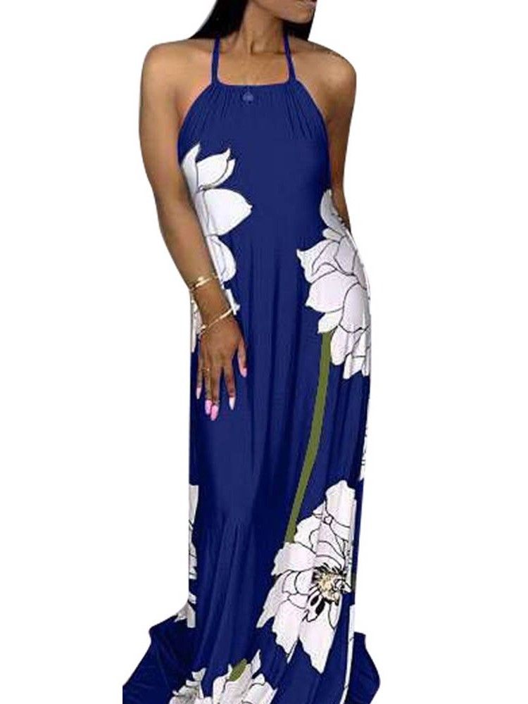 Kvinnors Golvlång Ärmlös Sommar Snörning Blommig Maxiklänning