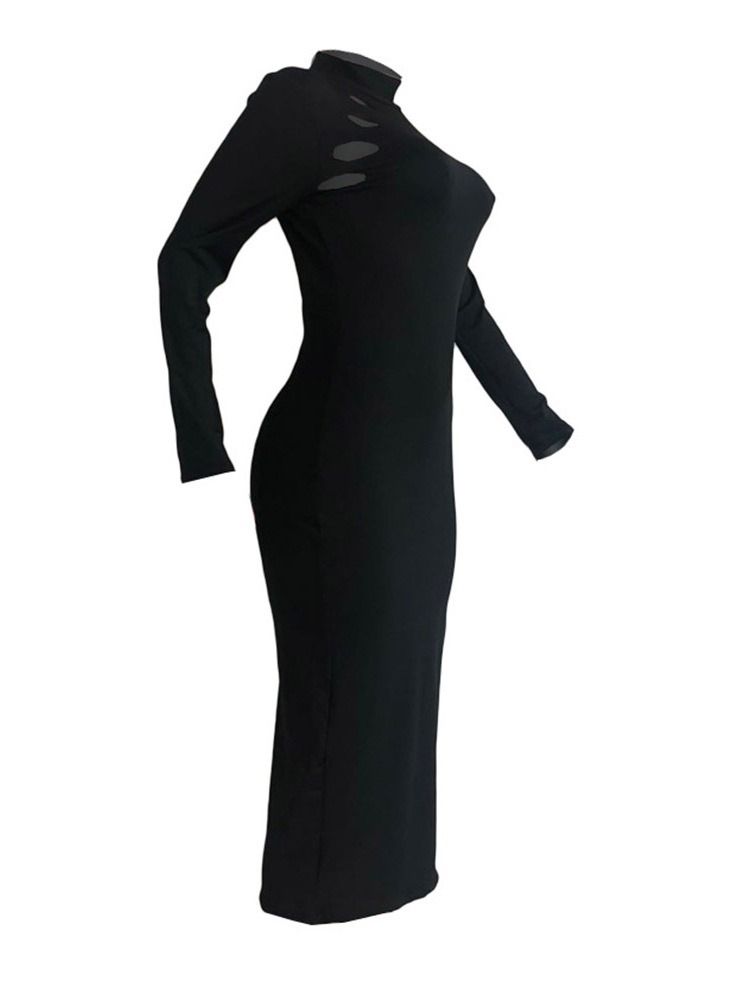 Kvinnors Ihåliga Långärmade Stativkrage Med Midja Vanligt Klänning