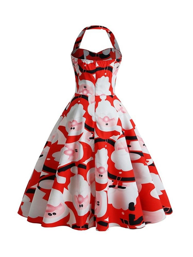 Kvinnors Jul Mittkalvtryck Ärmlös Tecknad Fest Cocktailklänning