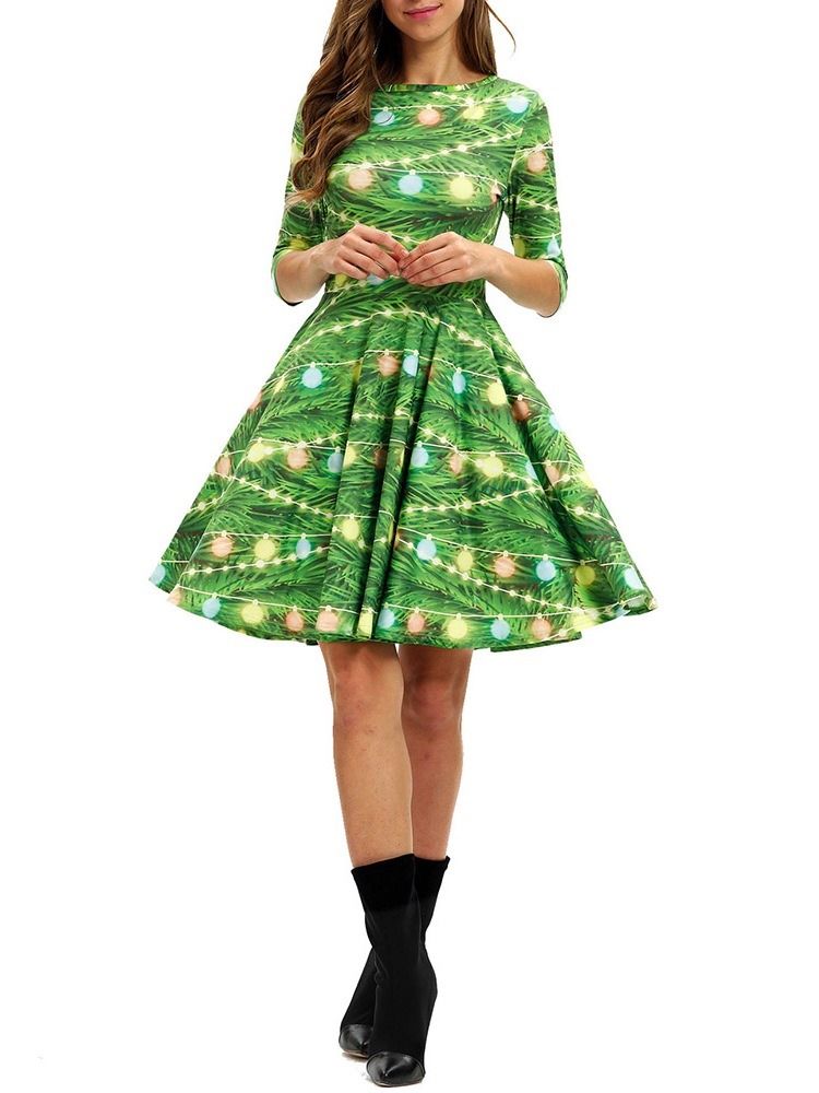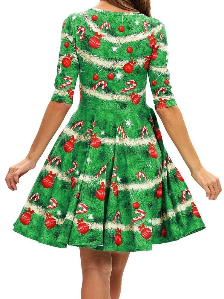 Kvinnors Jul-rund Hals Halv Ärm Över Knäet Sommarfest Cocktailklänning