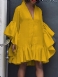 Kvinnors Knälång Långärmad Falbala Vanlig Klänning