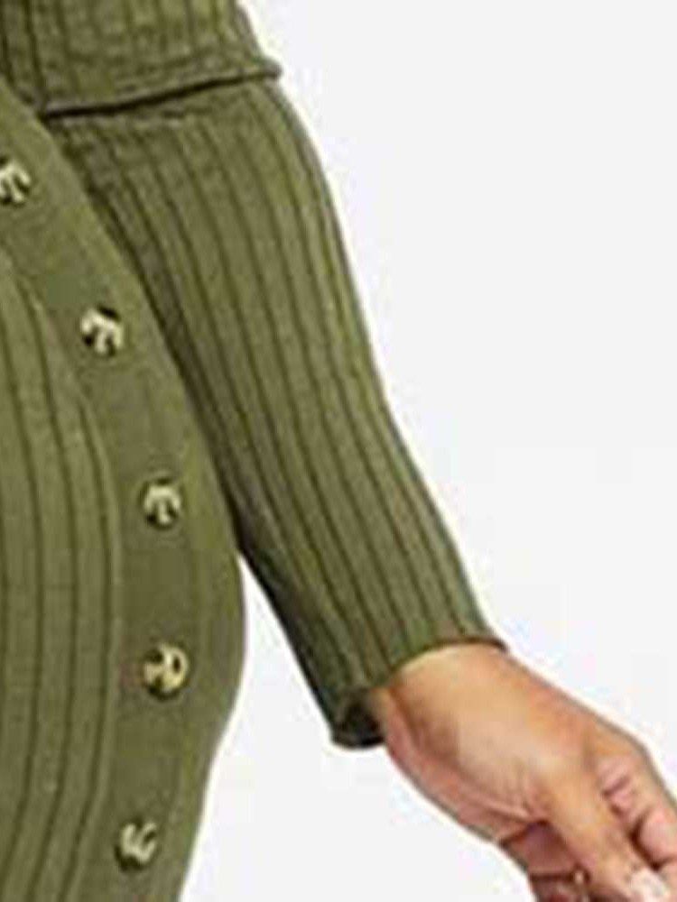 Kvinnors Knälång Långärmad V-ringning Bodycon-klänning Med Hög Midja