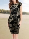 Kvinnors Kortärmad Knälång Rund Hals Party Cocktail Pullover Dress