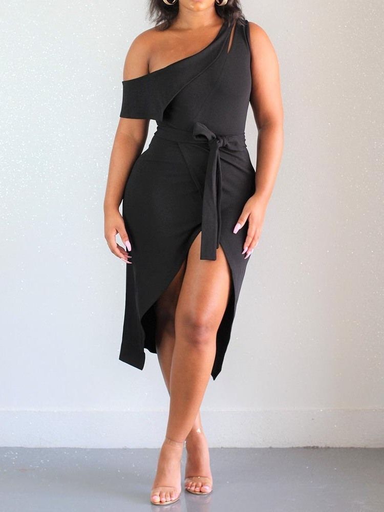 Kvinnors Kortärmad Mid-kalv En Axel Bodycon Enkel Klänning