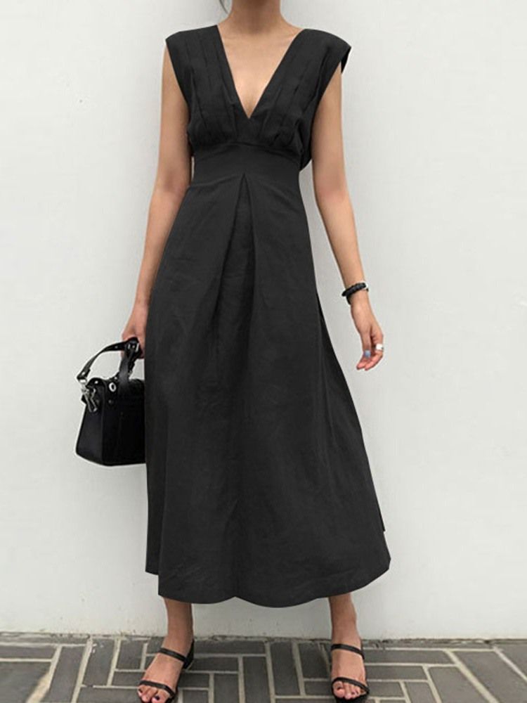 Kvinnors Kortärmade V-ringning Mid-kalv Vanlig Klänning