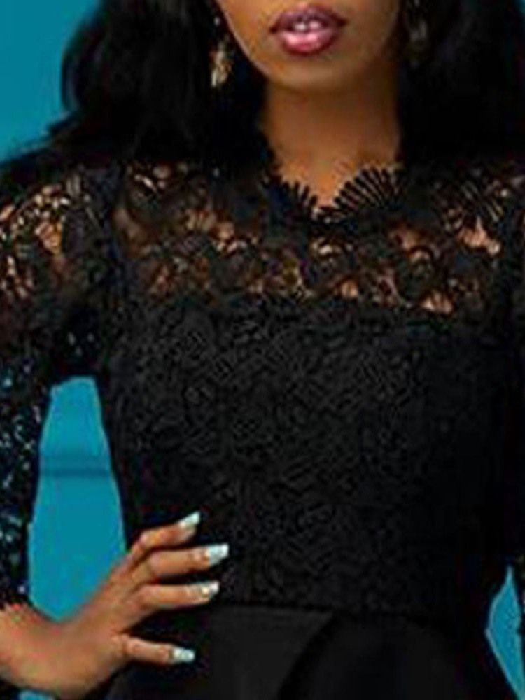 Kvinnors Långärmad Spets Knälång Pullover Vanlig Klänning