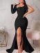 Kvinnors Långärmad Split Sned Krage Mitt Midja Tröja Klänning
