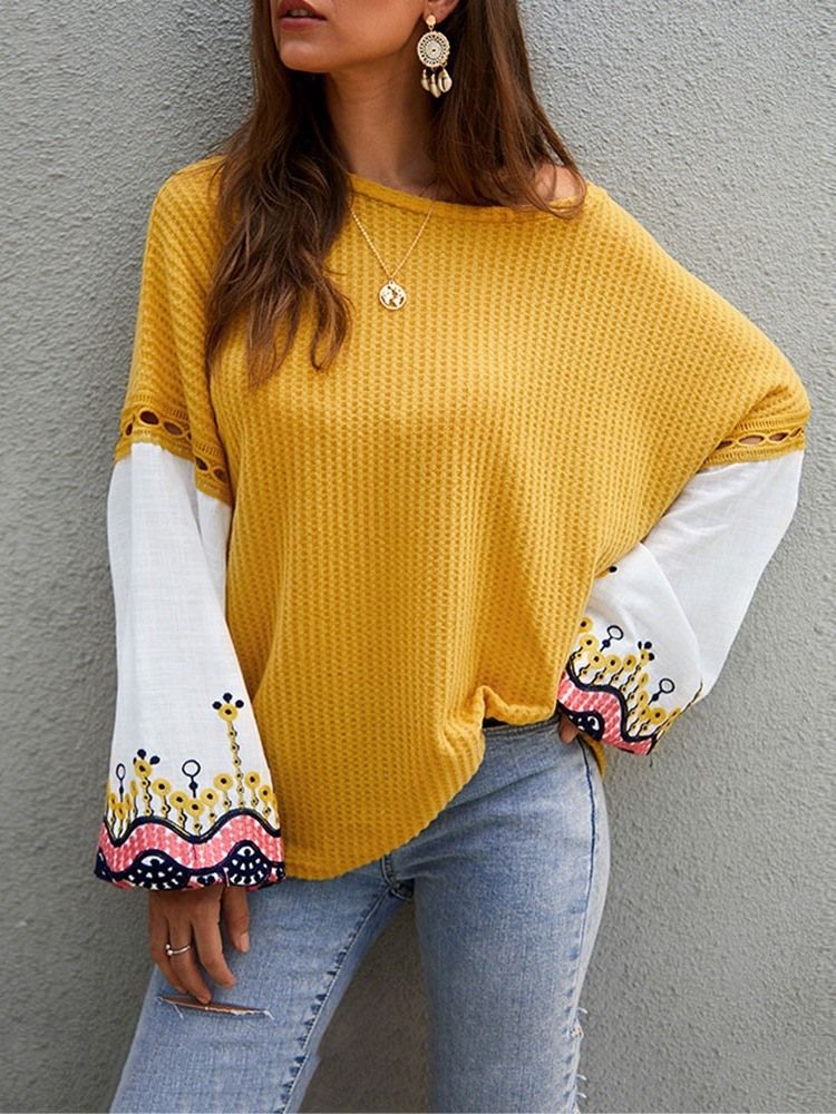 Kvinnors Lapptäcke Lanternärm Tunn Löst Tröja
