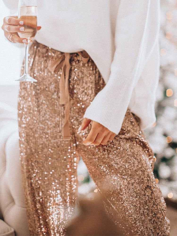 Kvinnors Lösa Paljetter Raka Hög Midja Casual Byxor
