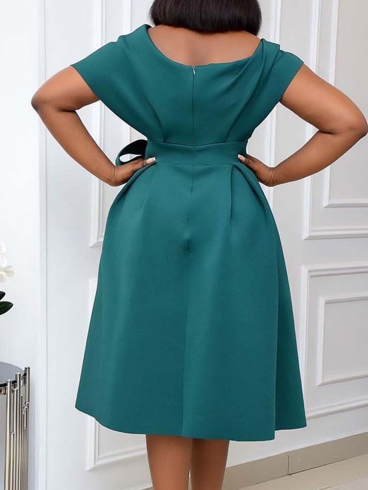 Kvinnors Mid-kalv Kortärmad V-ringad A-linjefärgad Klänning