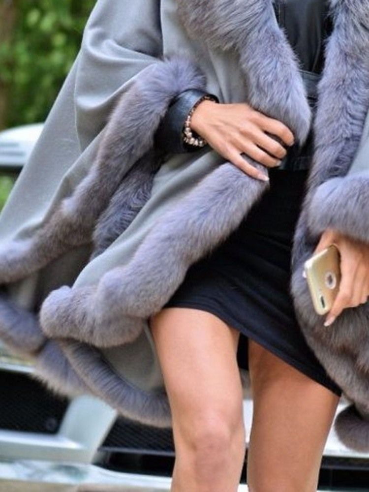 Kvinnors Mid-längd Plain Batwing Ärm Vinter Cape Faux Fur Overcoat