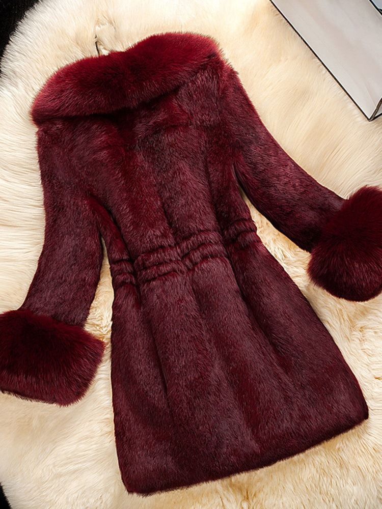 Kvinnors Mid-längd Slim Vinter Tjock Konstläder Överrock