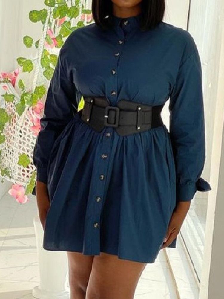 Kvinnors Nio Poäng Ärmställ Krage Ovanför Knä A-linjeformad Klänning