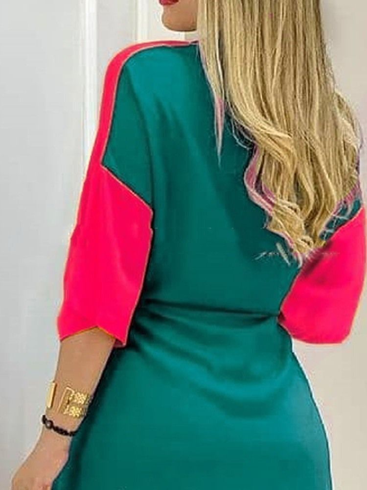 Kvinnors Omslag Trekvartärmad Knapp Vanlig Enkelbröstklänning