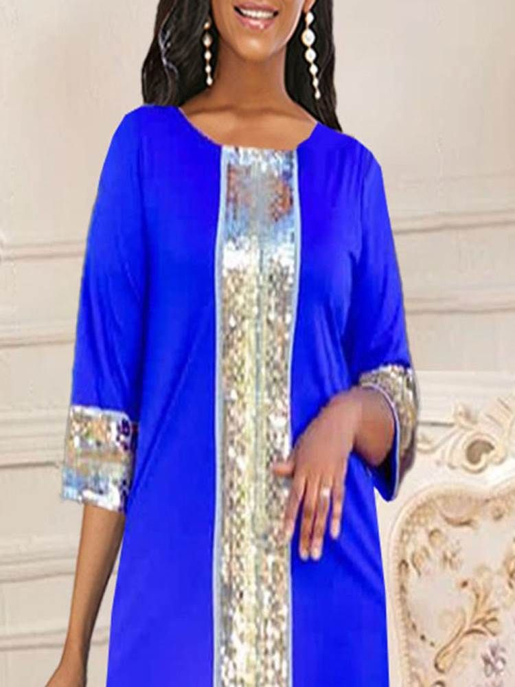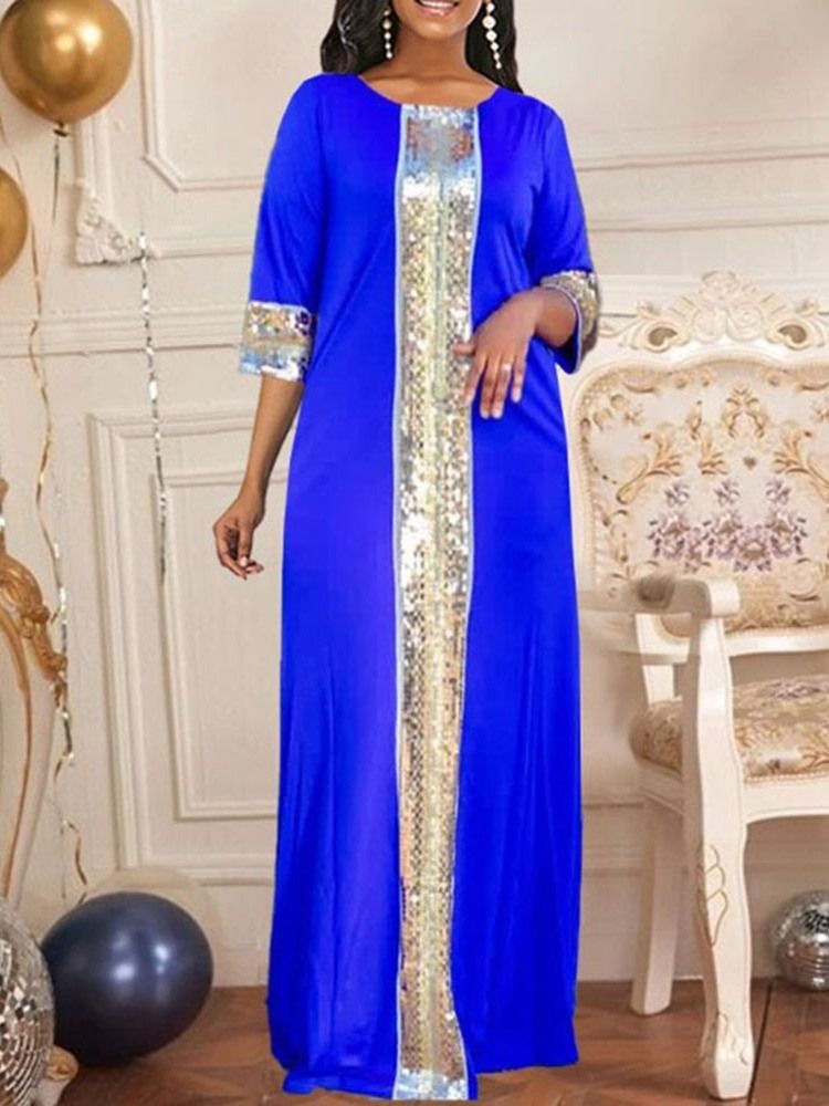 Kvinnors Paljetter Trekvartärmad Golvlång Pullover-klänning