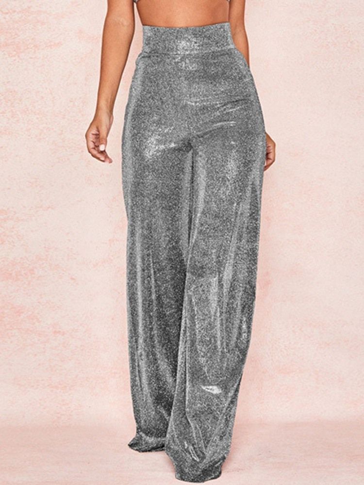 Kvinnors Plain Lurex Loose High Waist Full Length Casual Byxor