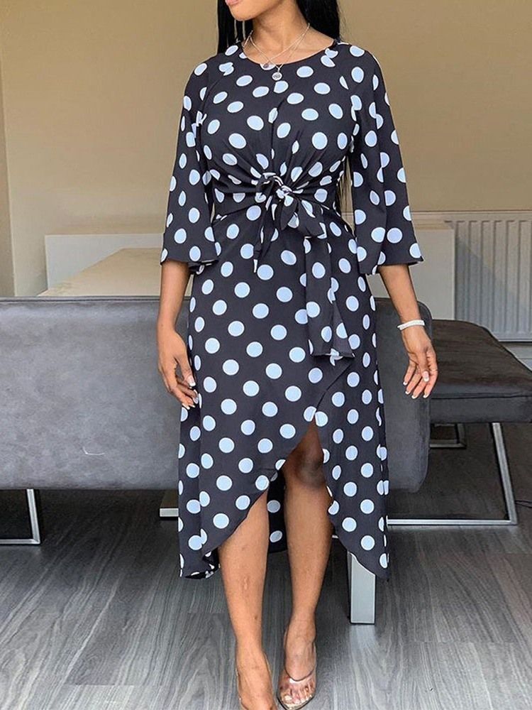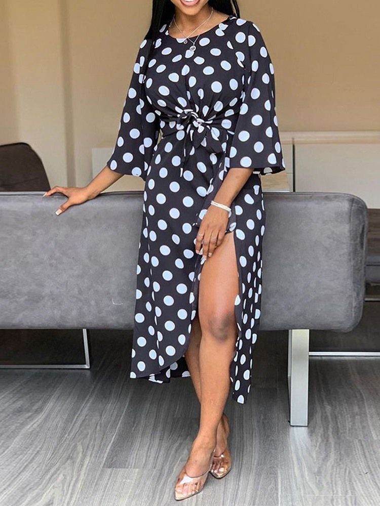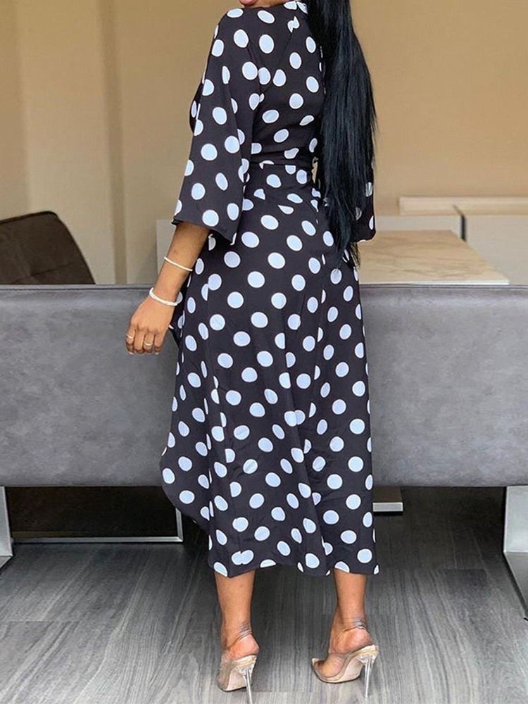 Kvinnors Prickar V-ringad Trekvartärm Med Asymmetrisk Klänning I Split